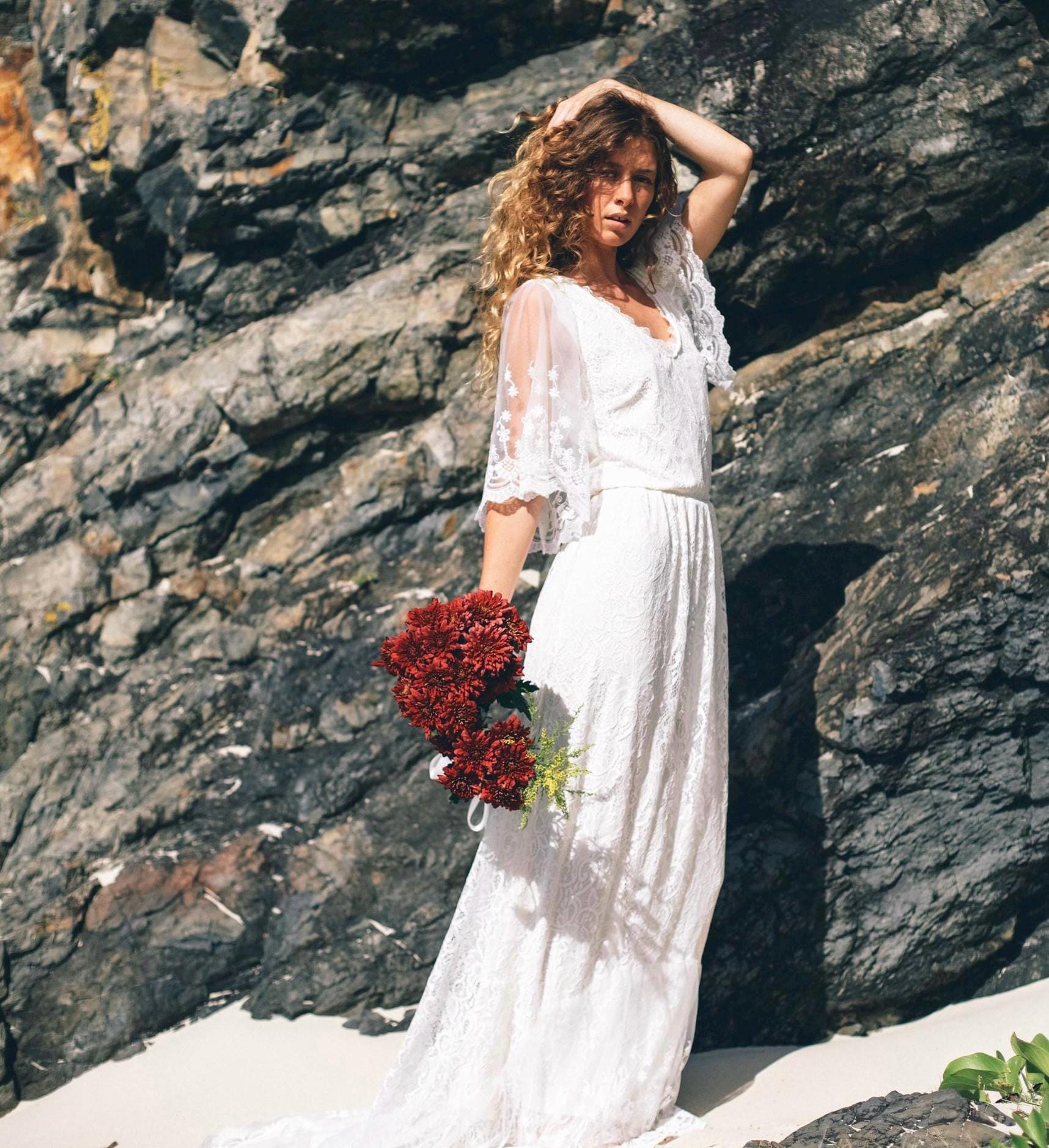 Divine lace Flutter flare Sleeve bridal Dress, floor length, no train.