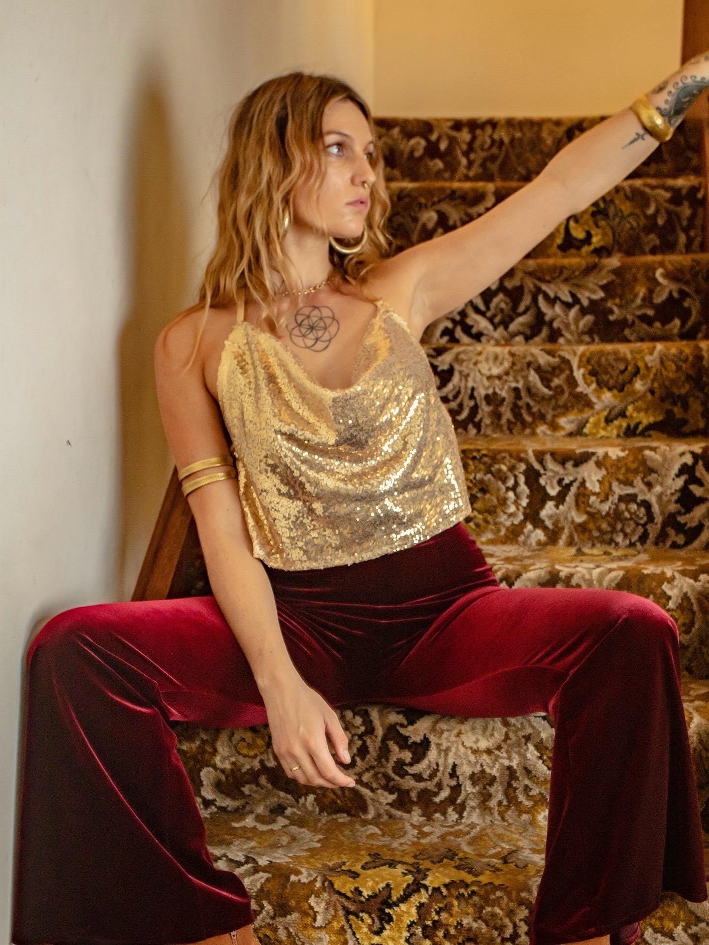Retro Copper Velvet 70s bell Flares. Are made from a beautiful high quality thick stretch velvet fabric. Feel amazing on!