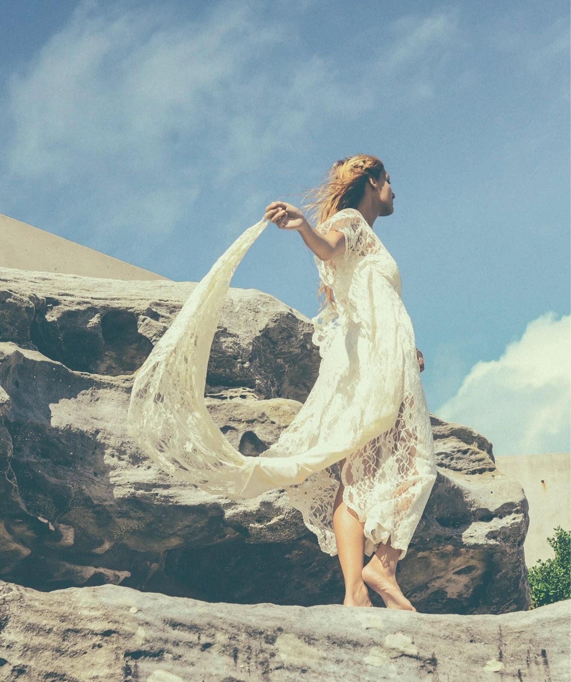 This dress style is inspired from 70s Bohemian Bride Kaftan. It is absolutely gorgeous bohemian wedding chic.