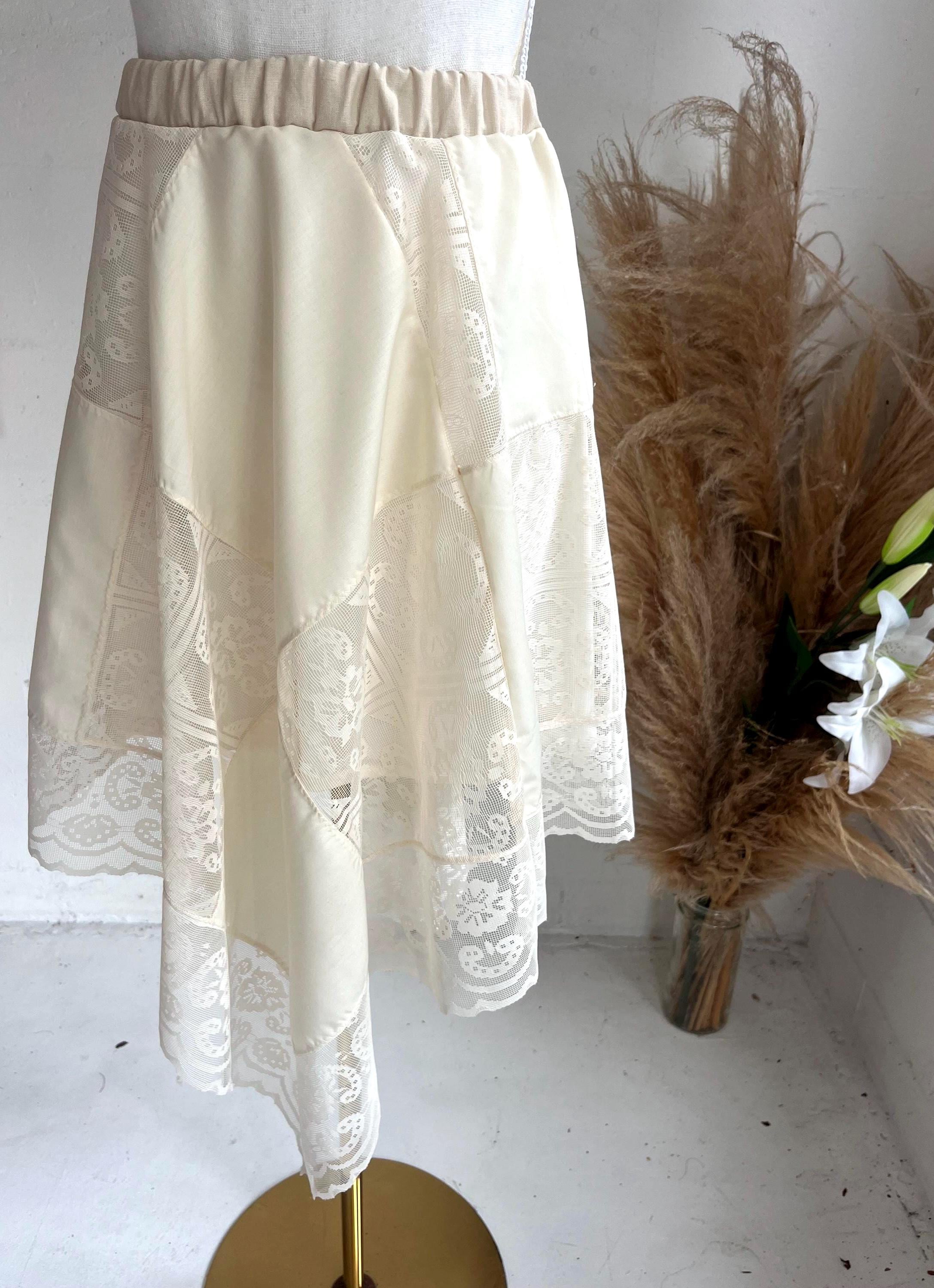 This gorgeous garment is made from soft Vintage Panelled Lace and cotton and stretch mini lining with elastic waist. Easy fit S/M Made with Love <3
