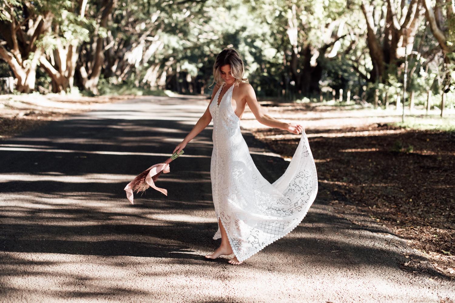 Amelia Cotton Lace Bohemian Bridal Dress with Train