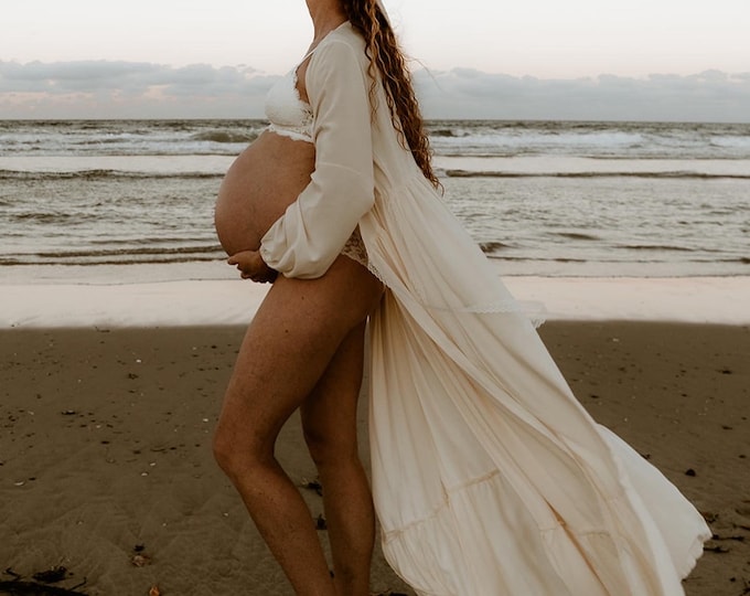 Florence Cream Boho Maternity Dress, Bell Sleeve Wrap, Handmade